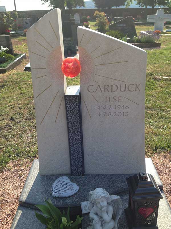 Bei einigen der gezeigten Grabmalen handelt es sich um eingetragene Geschmacksmuster, die in ihrer Gestaltung nicht von Dritten nachgeahmt werden dürfen.